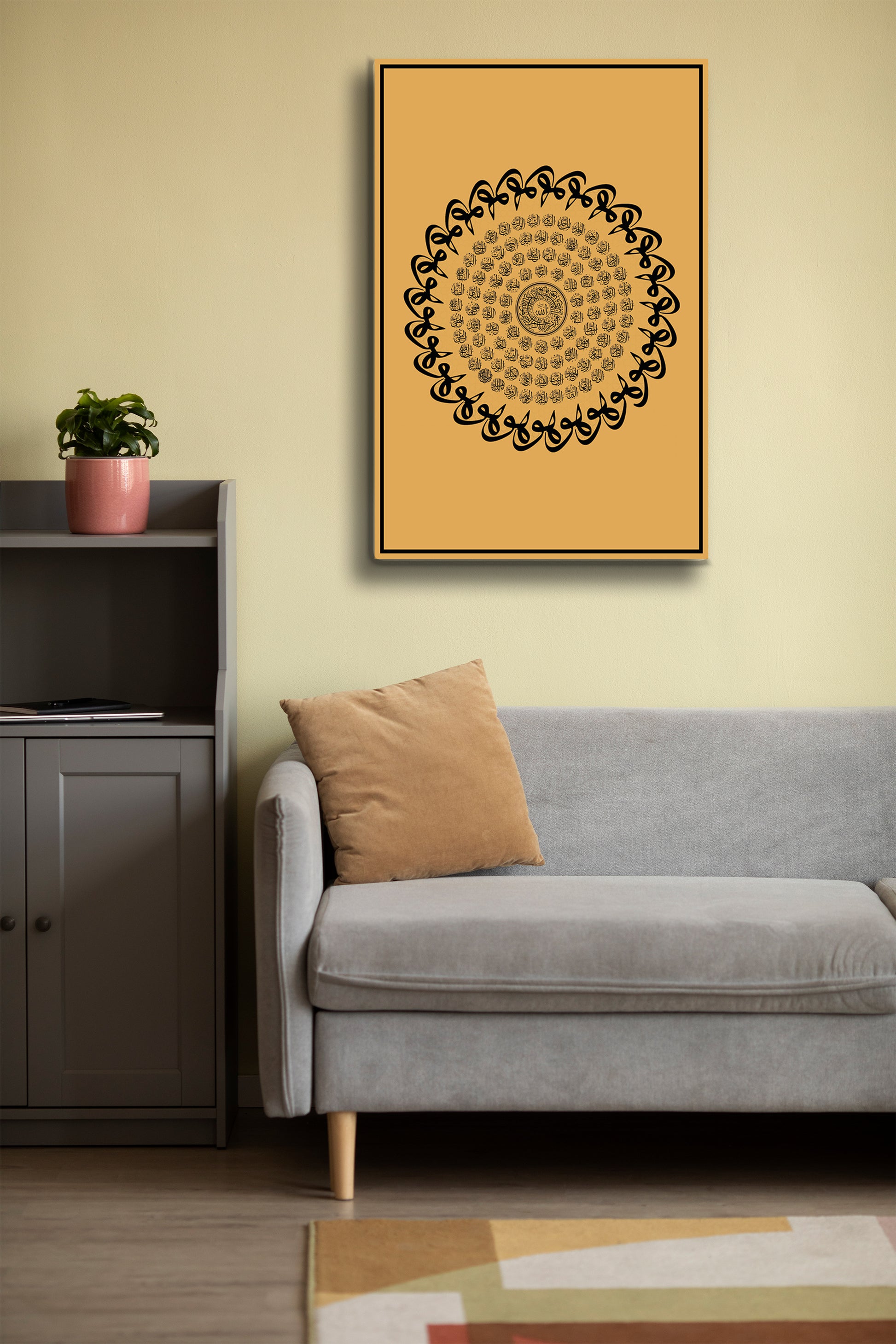 Dairesel düzeniyle sonsuzluğu, estetik çizgileriyle uyumu temsil eder. Bu tablo, hem manevi anlamı hem de sanatsal değeriyle yaşam alanlarına derin bir huzur kazandırır.